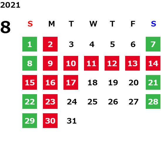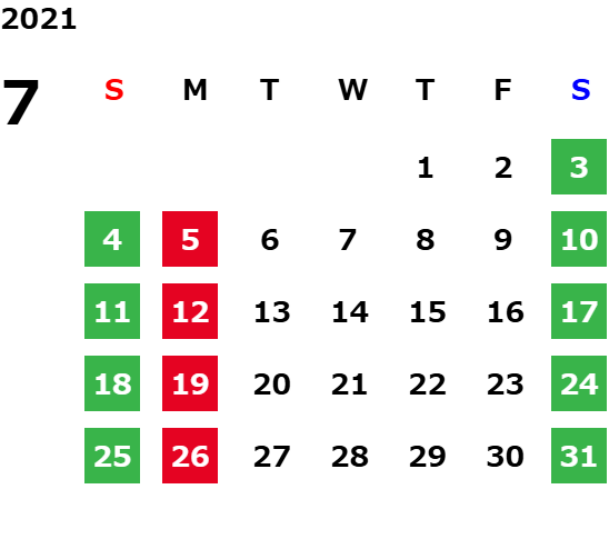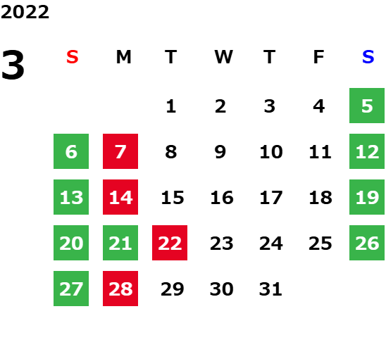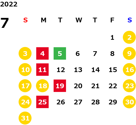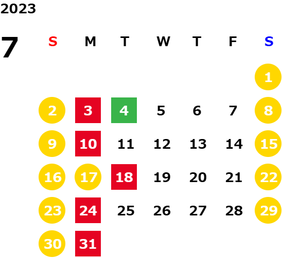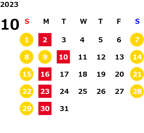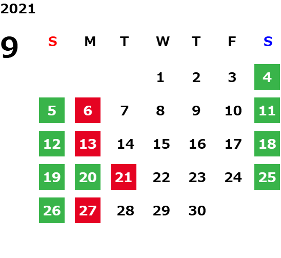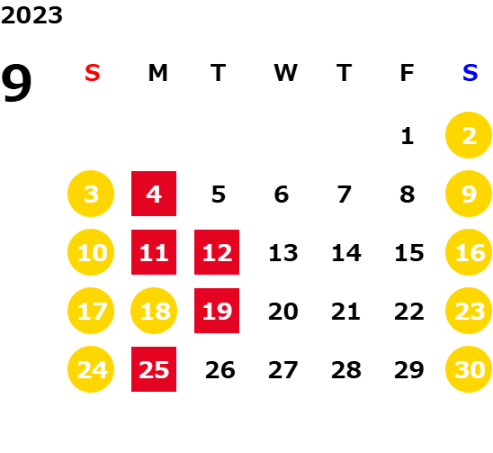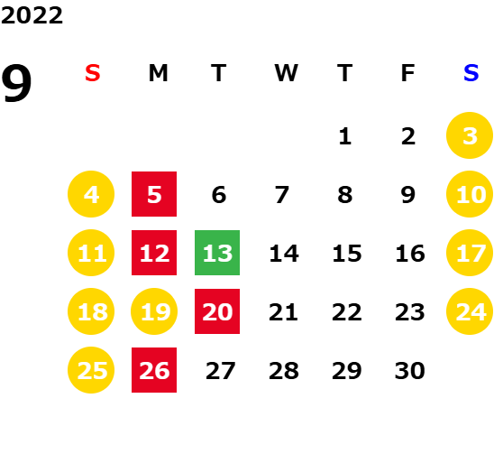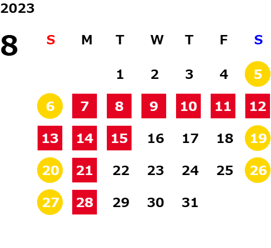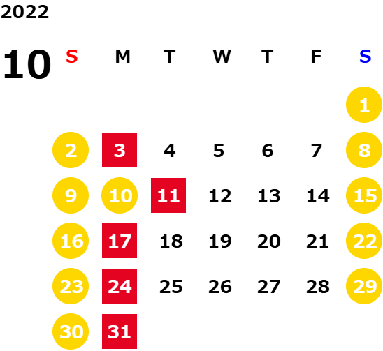 定休日:毎週月曜日及び第1火曜日(月曜日が祝日の場合は翌平日ただし7/21、9/15、10/13は祝日定休)