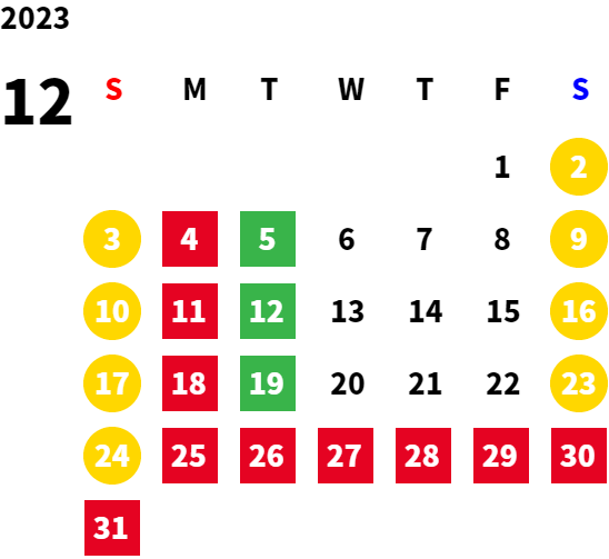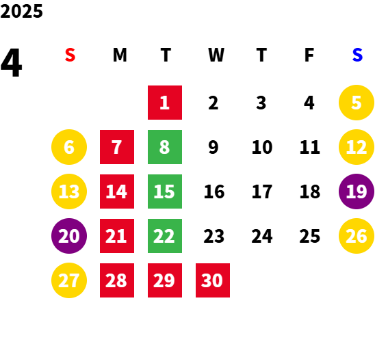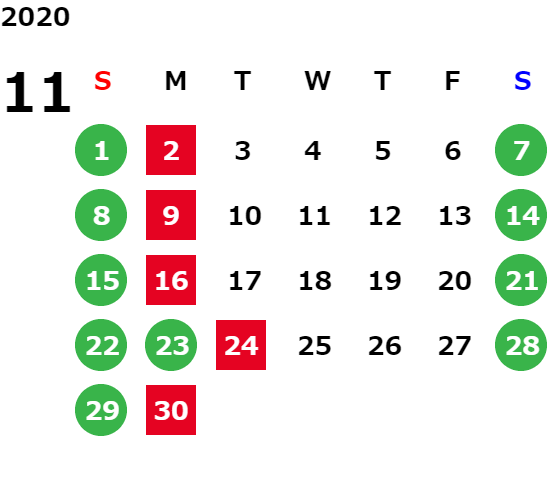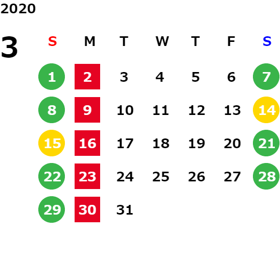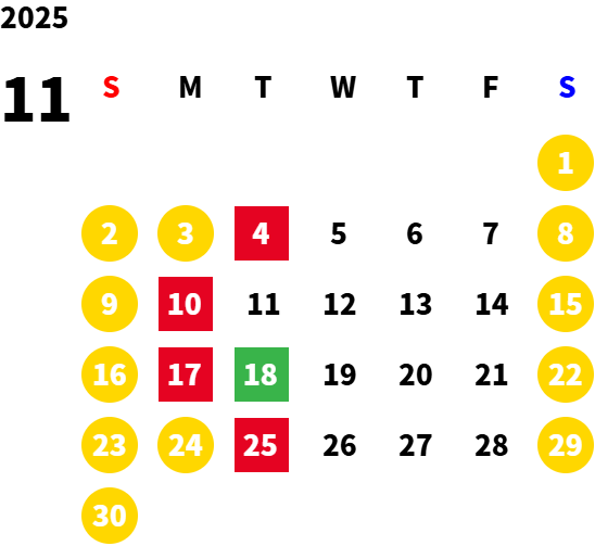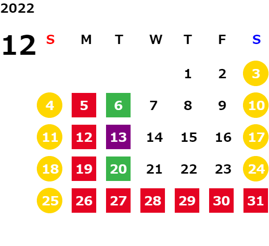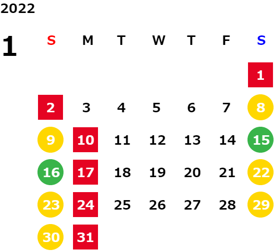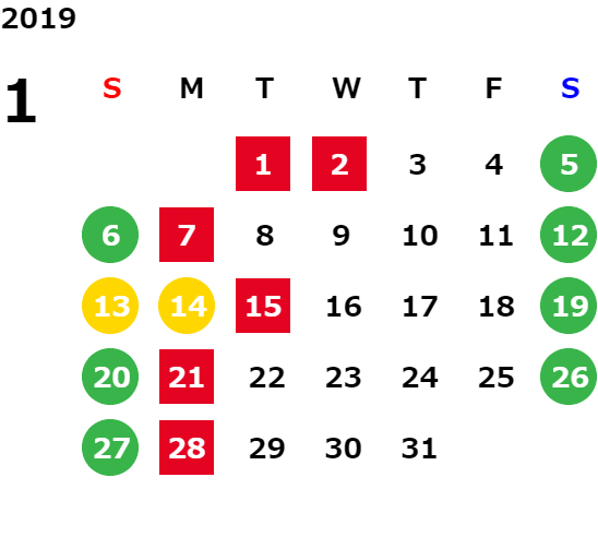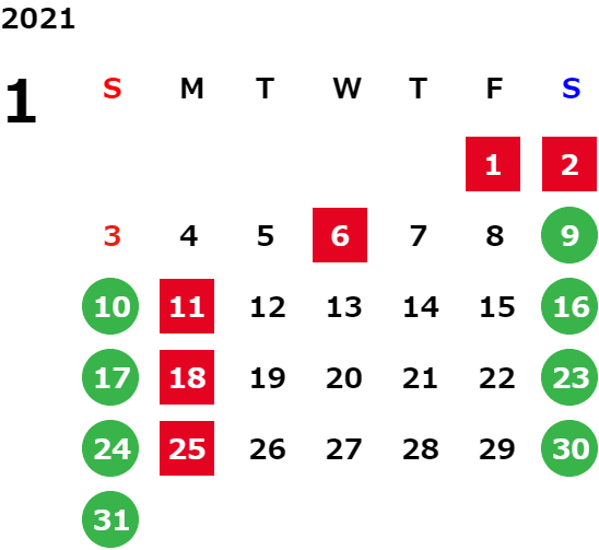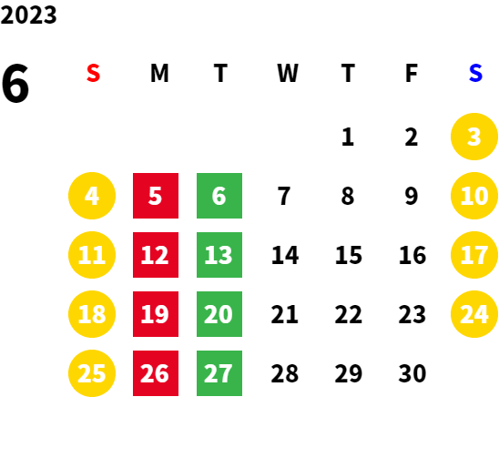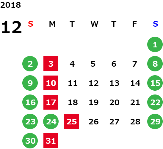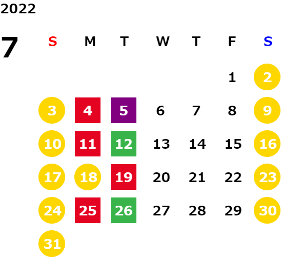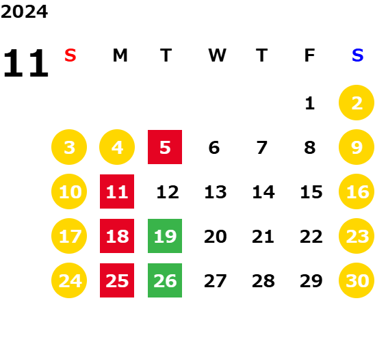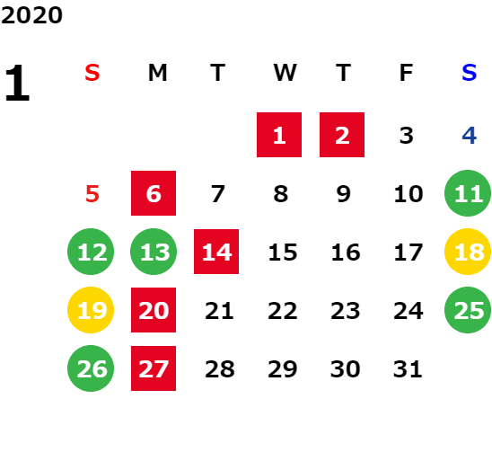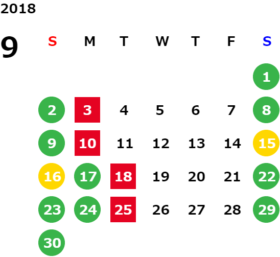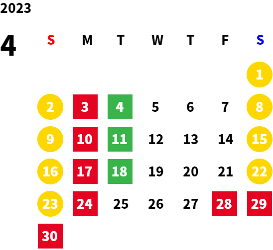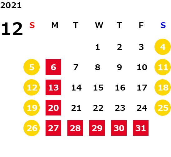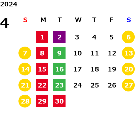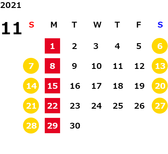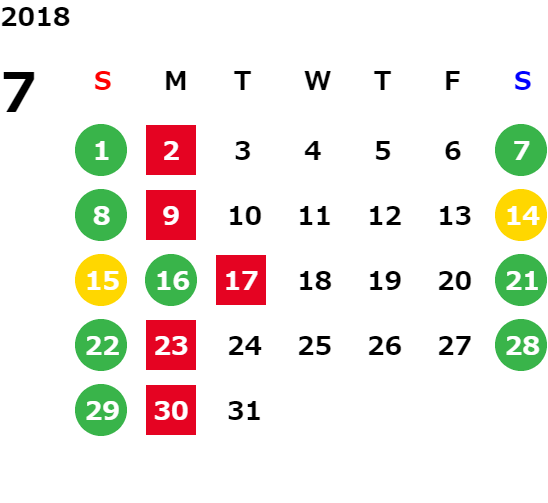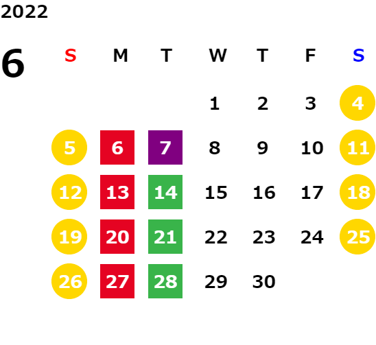 毎週月曜日及び第1火曜日(月曜日が祝日の場合は翌平日、ただし7/21、9/15、10/13は祝日定休)