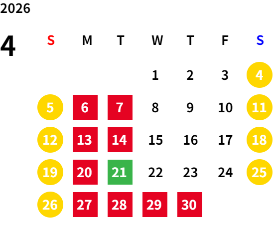 毎週月曜日及び第1火曜日(月曜日が祝日の場合は翌平日、ただし7/21、9/15、10/13は祝日定休)